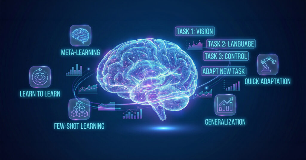 Think of it this way: if you teach a child to tie their shoes, they might take ten tries to learn. But if you show them a trick on how to learn new tasks faster, they might pick up tying shoes in just two tries. That’s what meta-learning in AI does for machines.